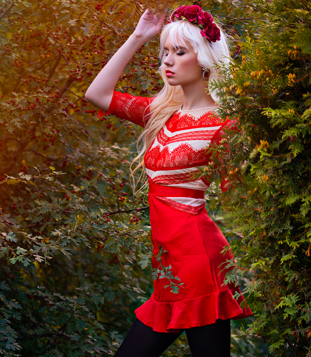 STYLEMOI I just feel in love with this stunning romantic dress. Red artificial silk with lace combined in sophisticated, trendy design. I wanted to make really sensual, sexy romantic date look, and this dress is just made for that kind of looks. Red high heels is a "must" for this dress. And I also used one of my favorite flower crowns for this look. As for the accessories, vintage style earrings with red glass, are perfect to finish the whole look. This look is great for Valentine's, dates, or relationship anniversaries. Try this look and check out this beautiful dress and earrings at STYLEMOI